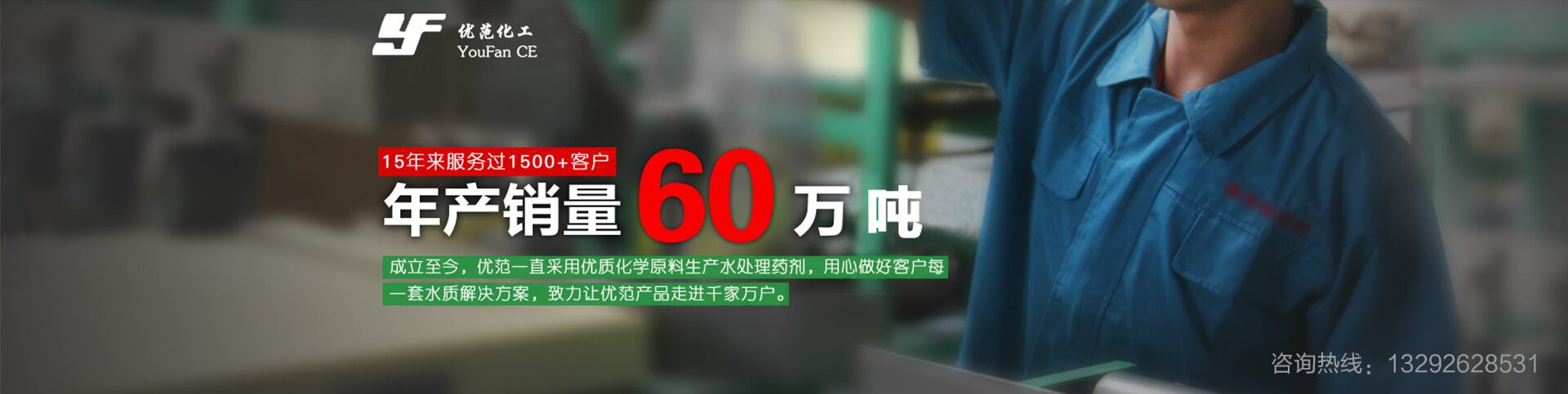 始于2005年,資質(zhì)健全,諸多榮譽,15年專業(yè)水處理藥劑研發(fā)生產(chǎn)商。專注于對阻垢劑、殺菌滅藻劑、反滲透膜阻垢劑、速效除垢劑、清灰劑、污水處理藥劑等多種水處理藥劑的科研、設(shè)計、生產(chǎn)、銷售及售后服務(wù)。擁有現(xiàn)代化生產(chǎn)車間及高精度的水質(zhì)檢測設(shè)備,鑄造年產(chǎn)量60萬噸的超強生產(chǎn)力,可提供藥劑種類超過200種。從產(chǎn)品到售后,優(yōu)范環(huán)保科技提供專業(yè)一站式服務(wù),創(chuàng)百萬用戶認(rèn)可的好品質(zhì)!